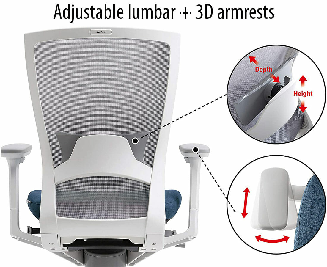 - Lumbar support: height and depth adjustable.