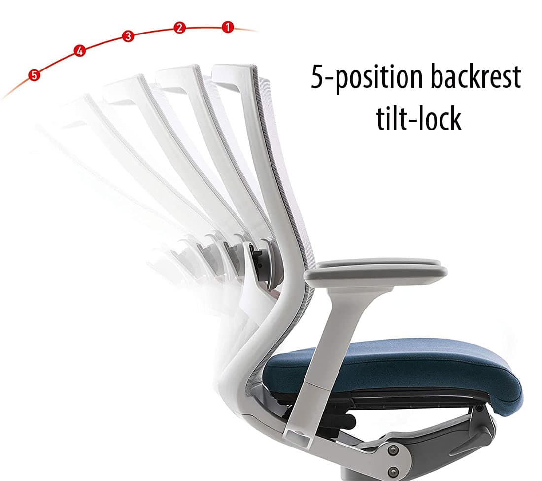 Another impressive notable is the 5-degree backrest tilt. Some other chairs in this price range only offer a 3-position lock. Within the 90-115˚ range, you get five viable upright working positions.