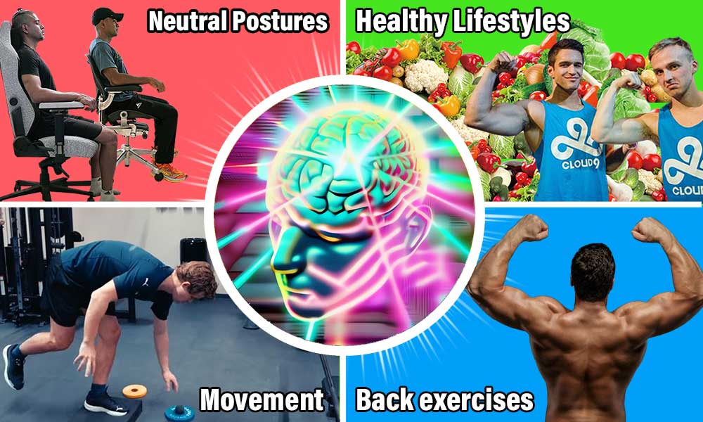 Ergonomic science established its core principles in the 1990s: lumbar-supported dynamic neutral postures (0° neck & 25-45° lower back curve) are the ideal for long periods of seated desk work. Over the past decade, esports performance coaches have prioritized the “dynamic” part: frequent movement, supported by adequate rest, nutrition, and exercise, helps players perform better. Recent studies further highlight movement as the ultimate lower back pain treatment.
